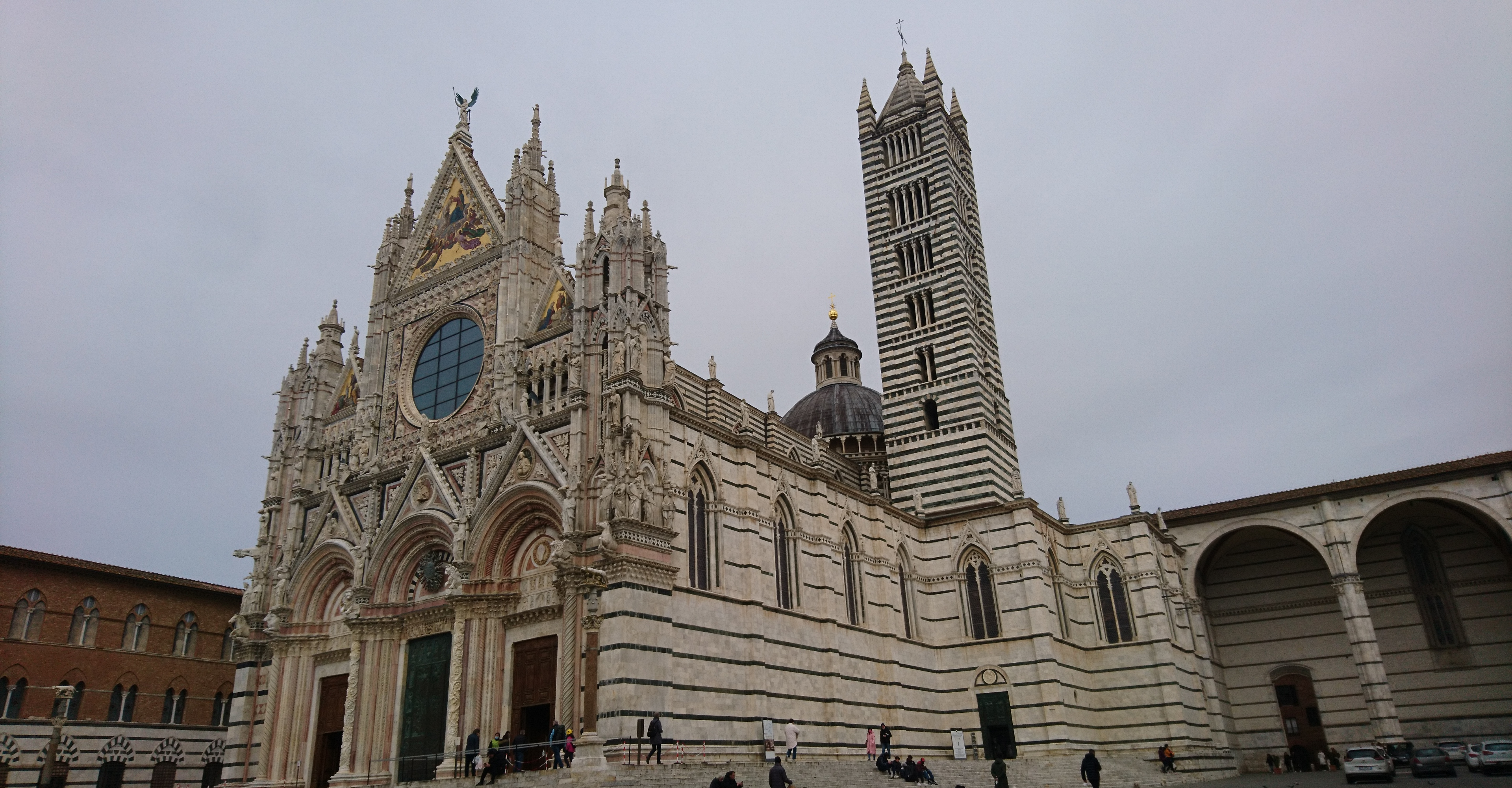 Siena, capital of the Province of Siena, in chianti region. The historical center of Siena is registered to UNESCO and it's very fabulous, with the main square, Piazza del Campo. Near this square, you have the Duomo di Siena, a Cathedral built during the 12th century, it's a gothic architecture style. The size of this cathedral is incroyable, 89 meters of length and 77 meters of height. On the facade, you can see stripes of white and black marbles and some red marble. You can see a set of statues on it, and there represents prophets and patriarchs.